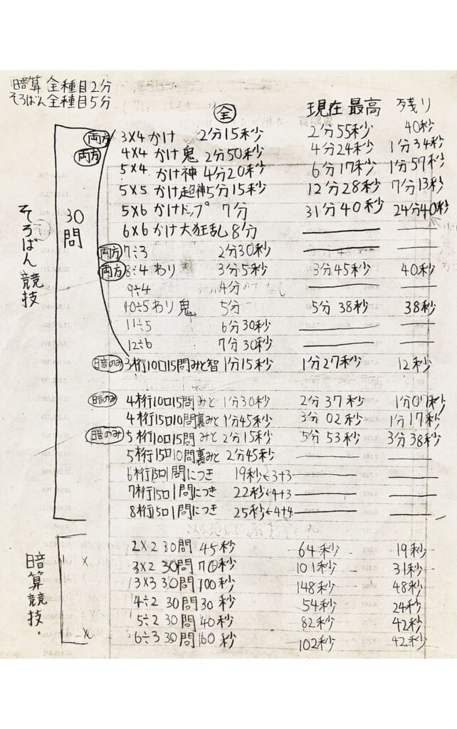 僕は、実際に「全国大会に行くためには、どのくらいのスピードが必要か」や「どのくらいの桁数で計算すればいいのか」を書き出してみました。